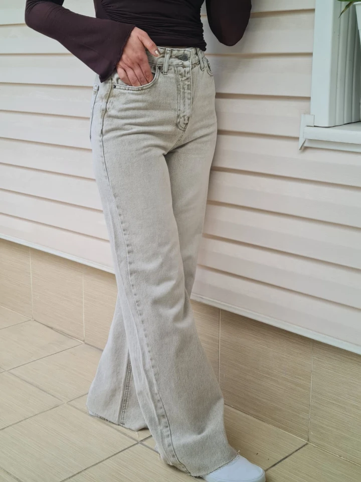 Geniş paça kesimi ve özel yıkama efektiyle hem modern hem zahmetsiz bir stil!
