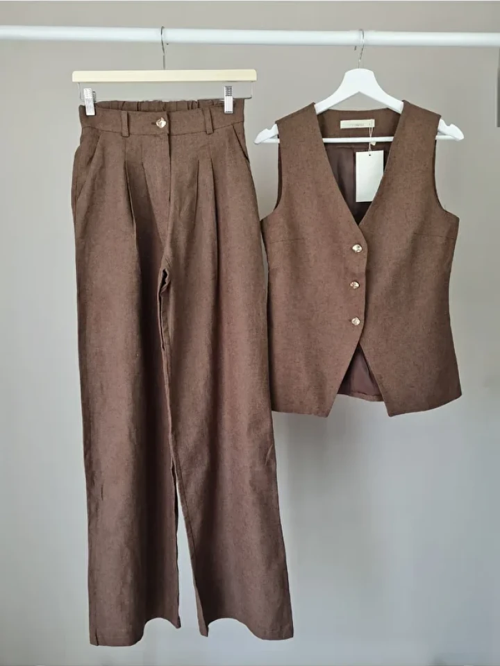 Yelekli Keten Takım