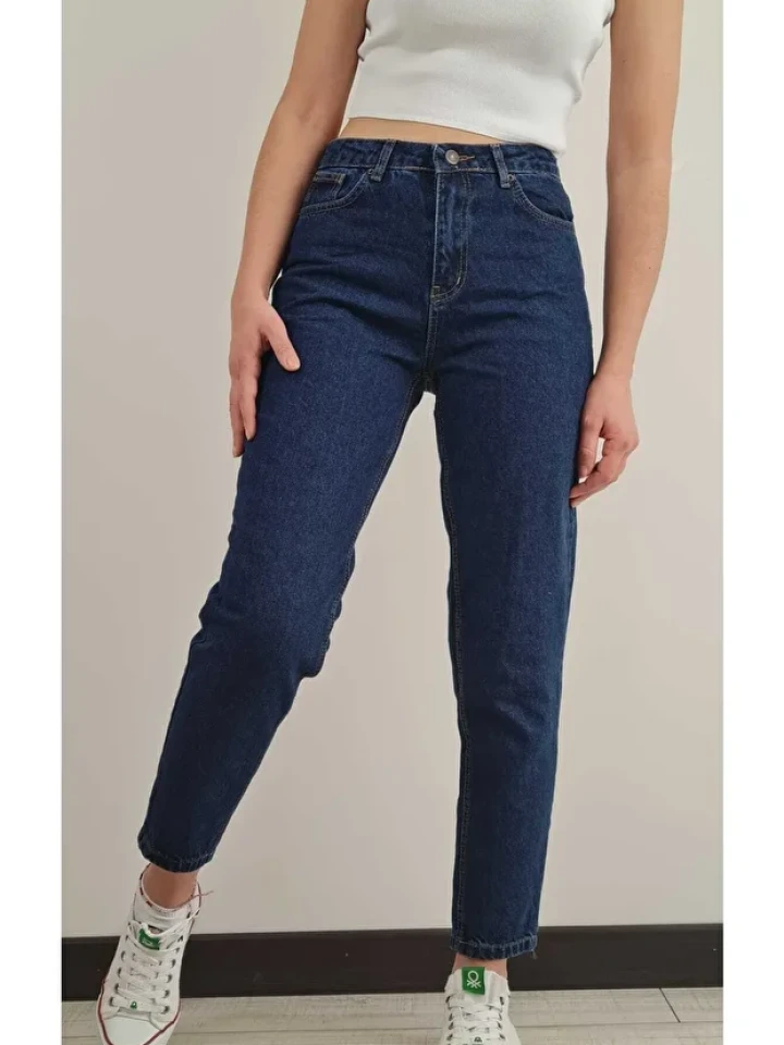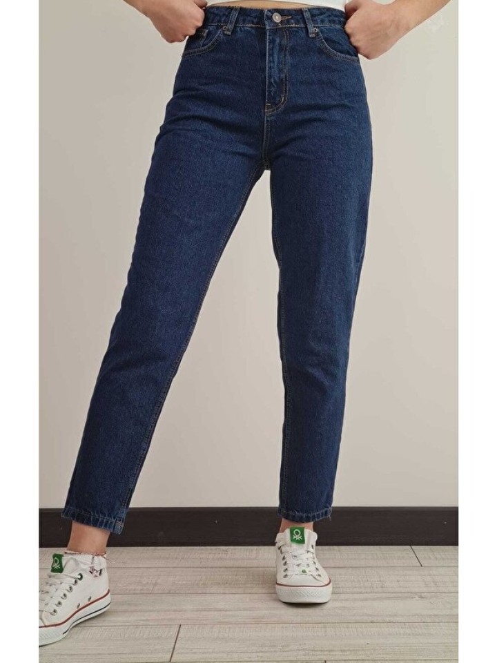 Rahat ve şık bir görünüm için koyu lacivert renkteki bu mom jean, günlük kullanımda konforlu ve stil sahibi olmanızı sağlar.