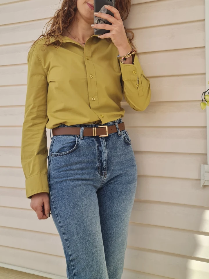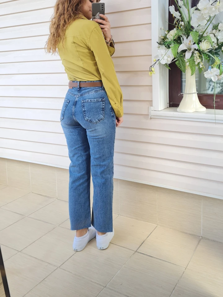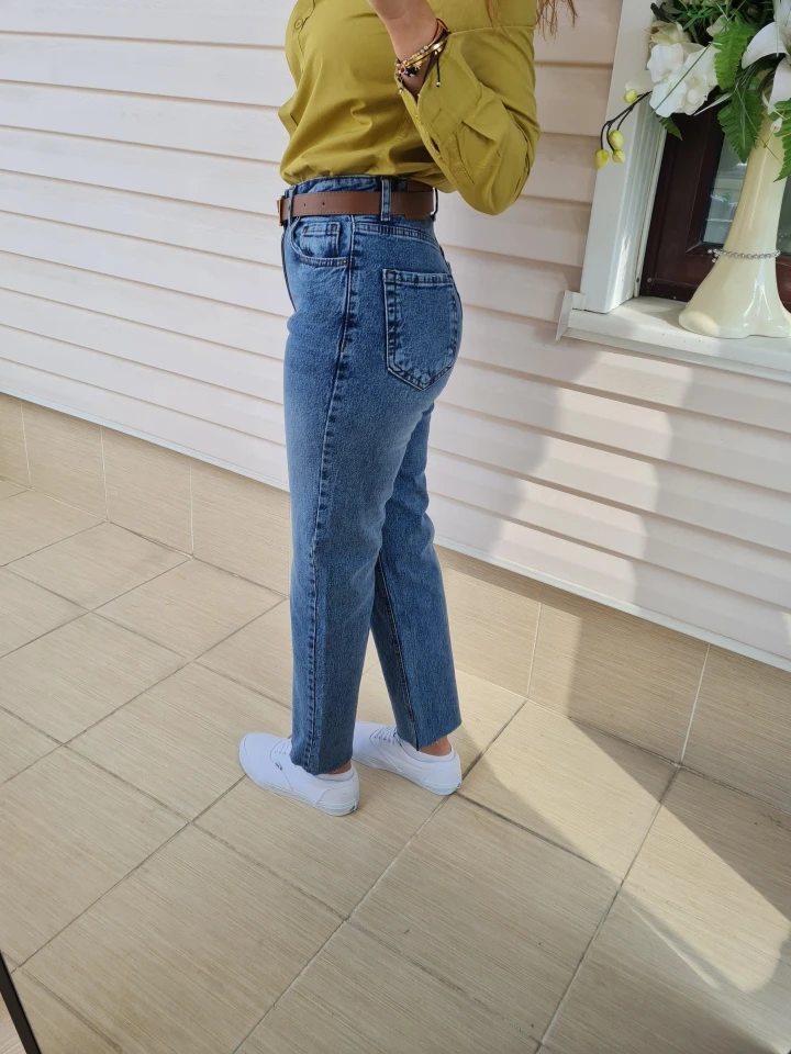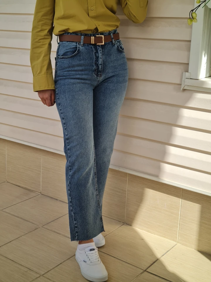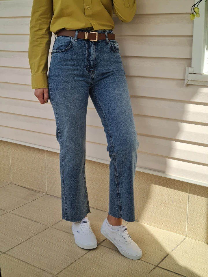 Paçası kesik straight jean’in cool havası bir arada! 💙Kemer detayı ile bel hattı daha belirgin.