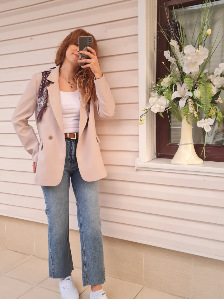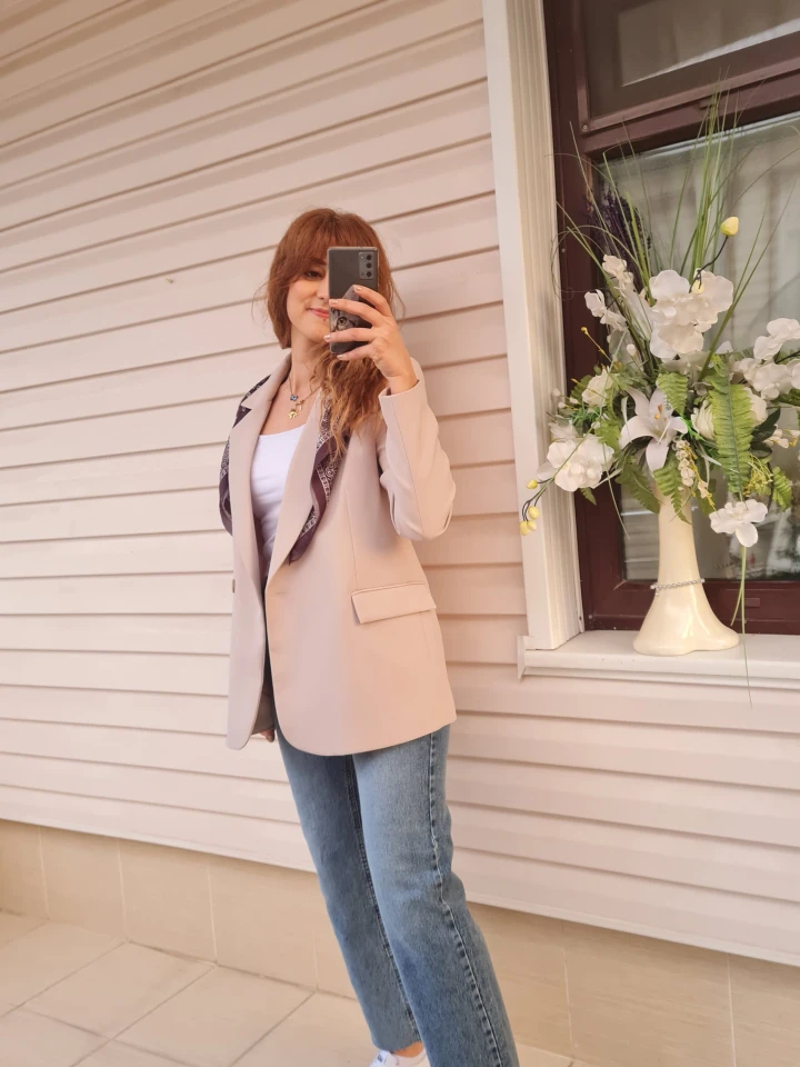 Fular Detaylı Blazer Ceket