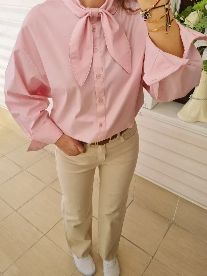 Fular yaka detayıyla güçlü ama sade bir duruş.