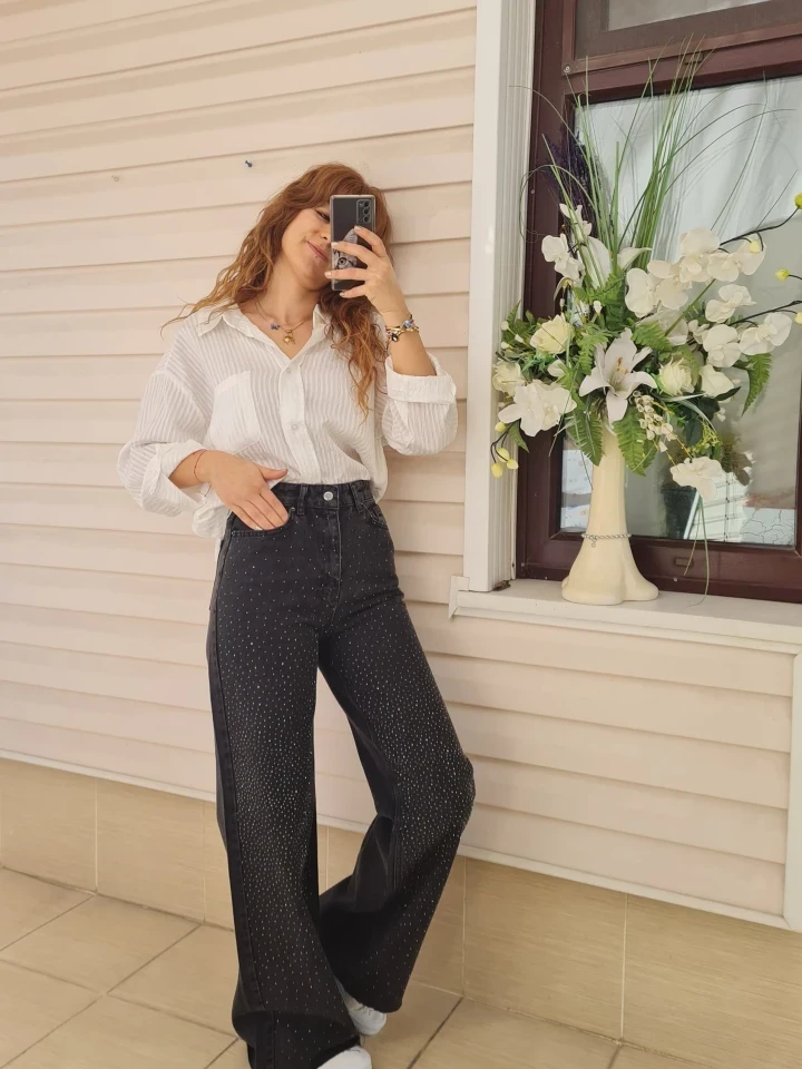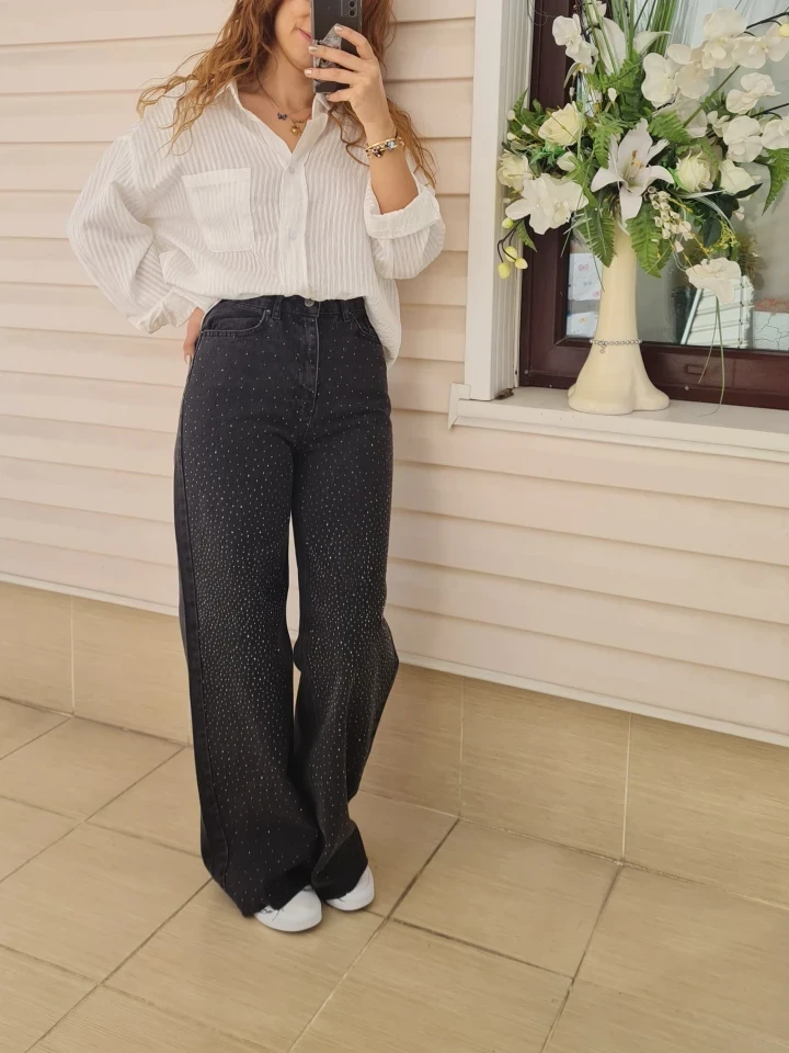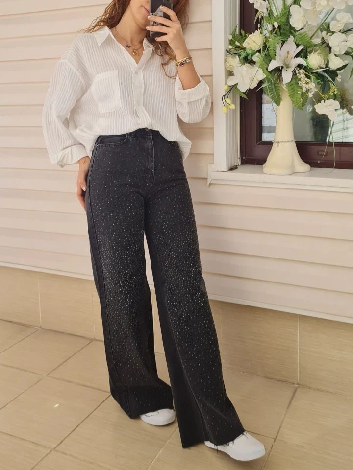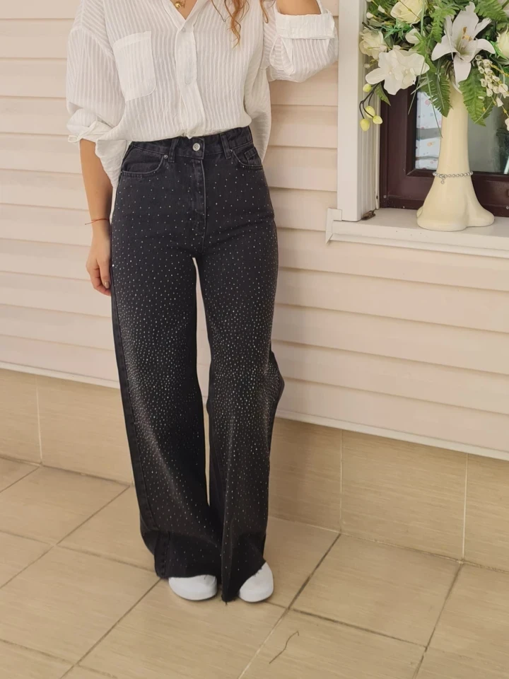 Taşlı Plazo Kot, rahatlığın en şık hali.