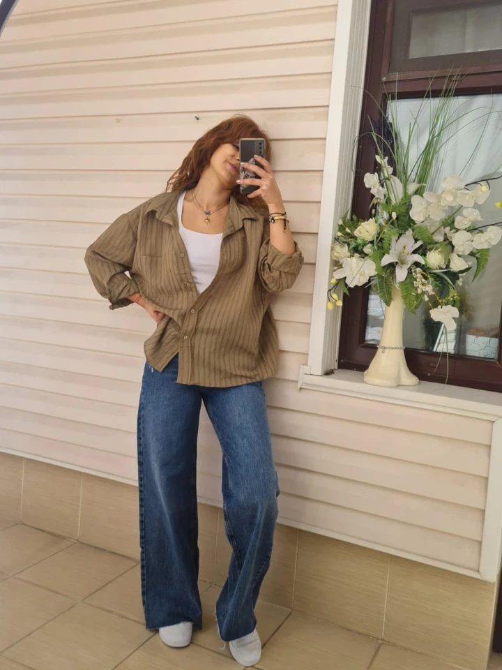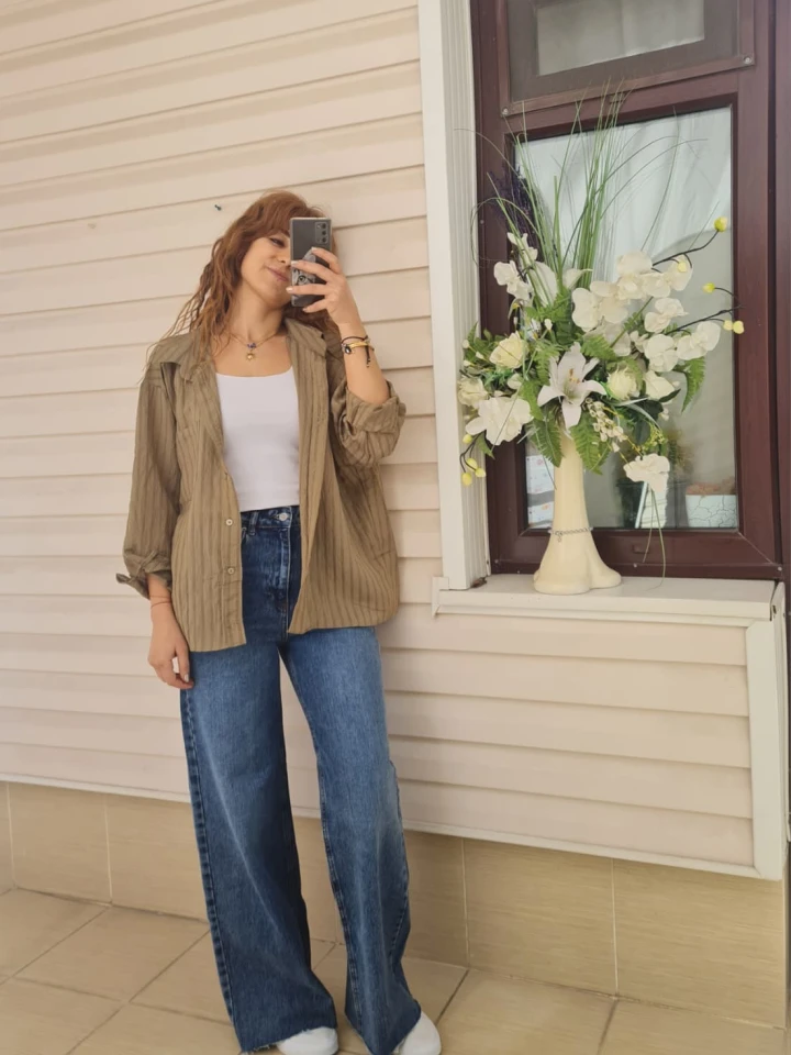 {"type":"doc","content":[{"type":"paragraph","content":[{"type":"text","text":"Çabasız Şıklık: Yeşil Çizgili Oversize & Palazzo Jean Kombini! 🌿💙"}],"attrs":{"textAlign":"start"}},{"type":"paragraph","attrs":{"textAlign":"start"},"content":[{"type":"text","text":"Günün stili hem rahat hem de iddialı olsun diyenler burada mı? Pastel tonlardaki çizgili oversize gömleğimizin hafif dokusu, vücut hatlarını kusursuz gösteren palazzo jean ile birleşti. İster hafta sonu kahvesinde, ister ofis şıklığında; bu kombinle tüm bakışlar üzerinde olacak! ✨"}]},{"type":"paragraph","attrs":{"textAlign":"start"},"content":[{"type":"text","text":"Kombin Detayları:"}]},{"type":"paragraph","attrs":{"textAlign":"start"},"content":[{"type":"text","text":"🌿 Yeşil Çizgili Oversize Gömlek: Nefes alan dokusu ve dökümlü kesimiyle gün boyu konfor."}]},{"type":"paragraph","attrs":{"textAlign":"start"},"content":[{"type":"text","text":"👖 Mavi Palazzo Jean: Belinizi ince, boyunuzu olduğundan uzun gösterecek o mükemmel kesim."}]},{"type":"paragraph","attrs":{"textAlign":"start"},"content":[{"type":"text","text":"👟 Stil Önerisi: Beyaz sneakerlar ve minimal kolyelerle tamamlamayı unutma!"}]},{"type":"paragraph","attrs":{"textAlign":"start"},"content":[{"type":"text","text":"🛒 Satış ve Detaylı Bilgi İçin:"}]},{"type":"paragraph","attrs":{"textAlign":"start"},"content":[{"type":"text","text":"Hemen incelemek ve sepete eklemek için web sitemizi ziyaret et!"}]},{"type":"paragraph","attrs":{"textAlign":"start"},"content":[{"type":"text","text":"Model Boyu:170"}]},{"type":"paragraph","attrs":{"textAlign":"start"}},{"type":"paragraph","attrs":{"textAlign":"start"},"content":[{"type":"text","text":"Model Kilo :57"}]},{"type":"paragraph","attrs":{"textAlign":"start"}},{"type":"paragraph","attrs":{"textAlign":"start"},"content":[{"type":"text","text":"Model Üzerinde ki Beden: Std"}]},{"type":"paragraph","attrs":{"textAlign":"start"},"content":[{"type":"text","text":"Model üzerindeki Jean Beden: 36"}]}]}