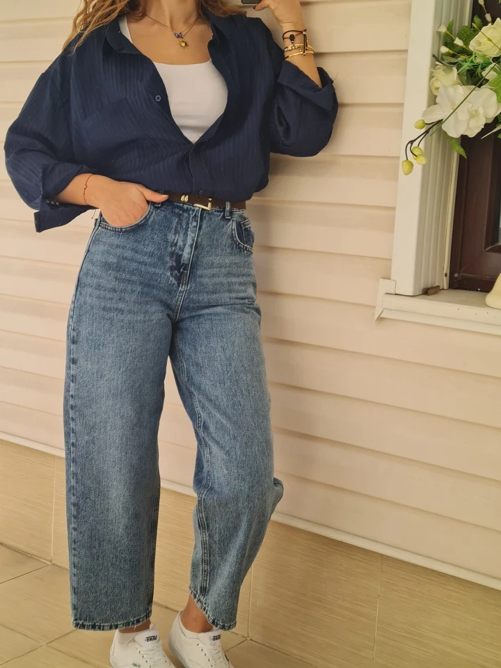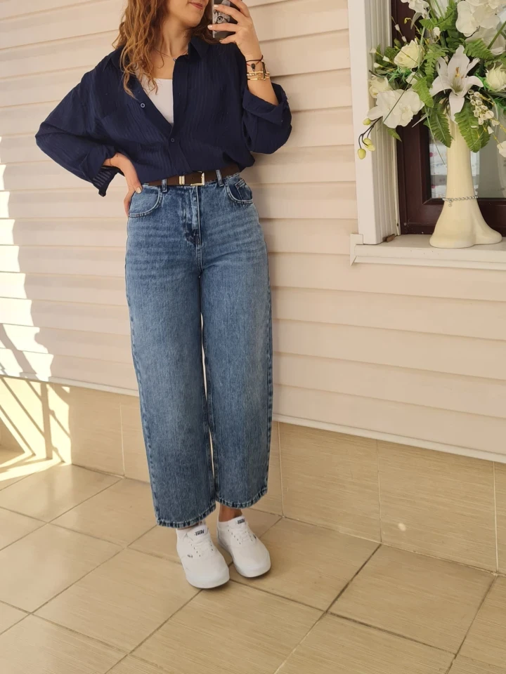 👖 Mavi Palazzo Jean: Belinizi ince, boyunuzu olduğundan uzun gösterecek o mükemmel kesim.