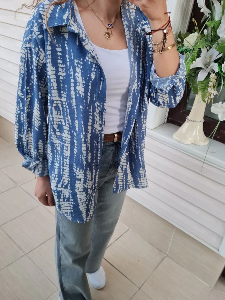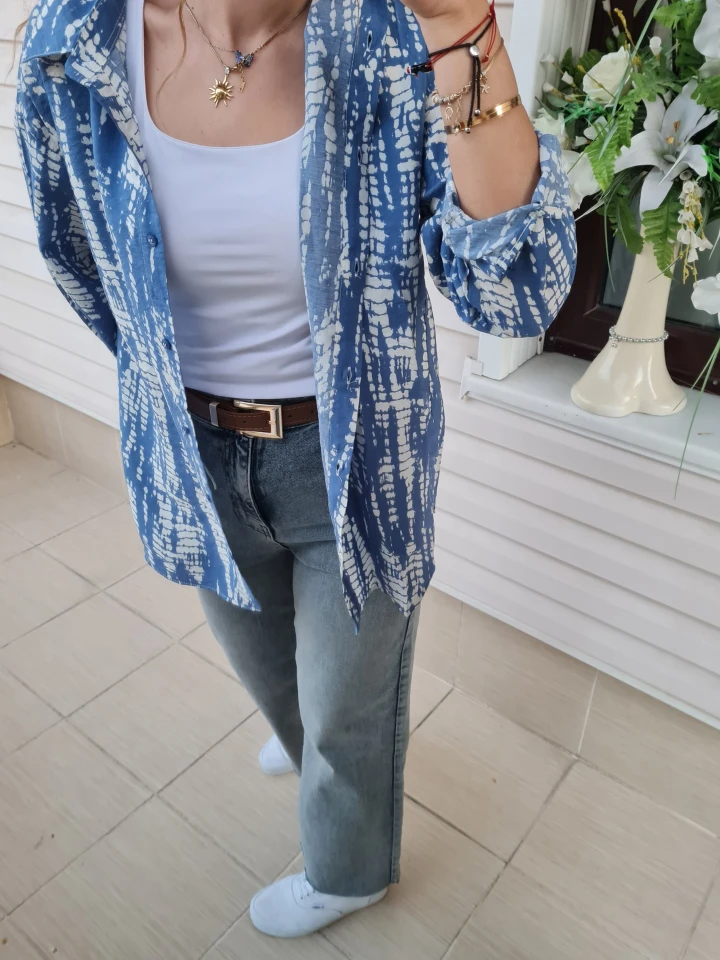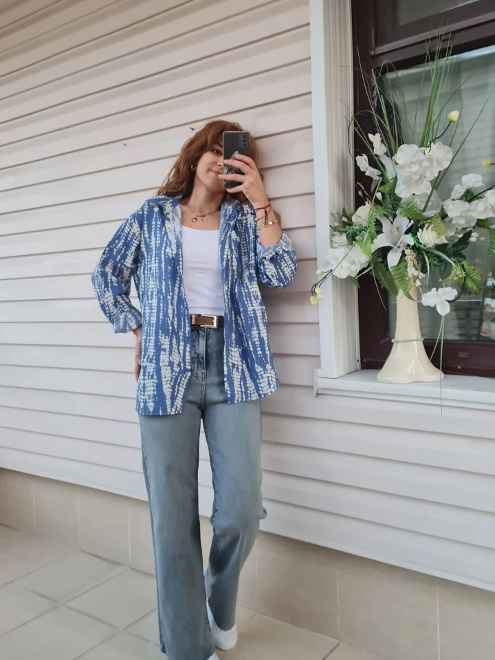 Renklerin en tatlı tonuyla denim cool’luğu birleşti! Hem ofis stiline hem de hafta sonu kahvelerine eşlik edecek bu görünümü kaçırma. Desenli Gömlek: Hafif dokusu ve canlı deseniyle enerjini yükseltmeye hazır.