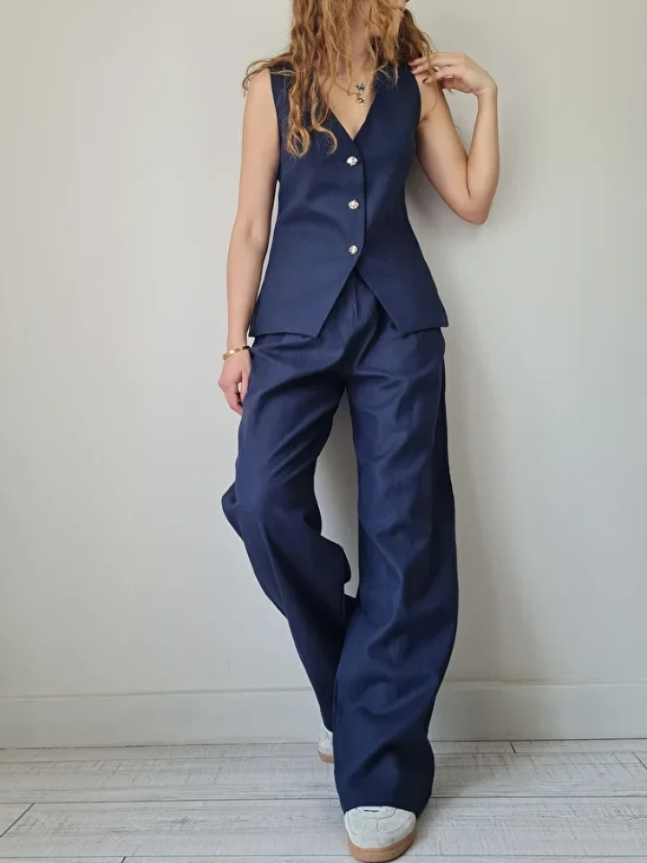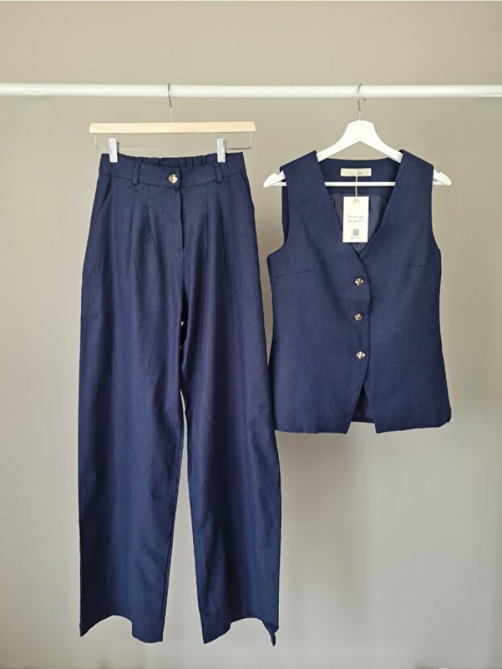 Yelekli Keten Takım