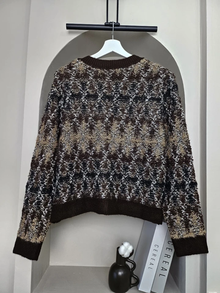🧥 *Etnik Desen Kahverengi Triko Hırka*