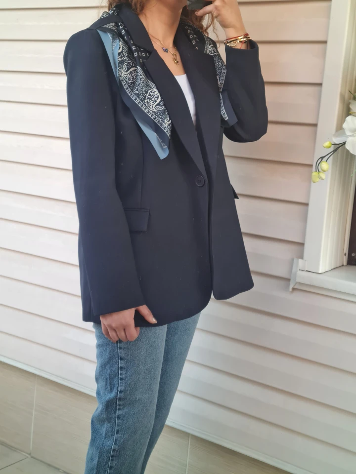 Fular detaylı blazer ceket, zarif rengi ve dikkat çeken detayıyla kombinlerinize sofistike bir dokunuş katıyor 🤍