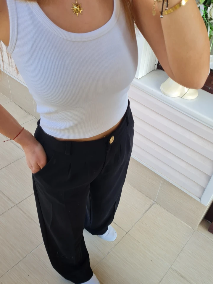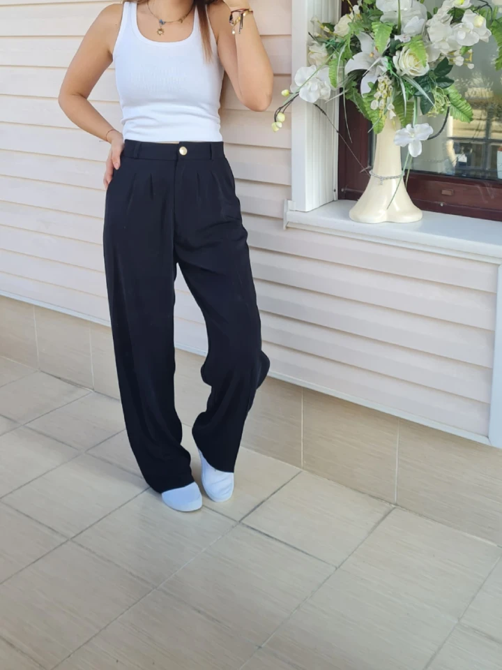 Akışkan duruşu, premium krep kumaşı ve gold düğme detayıyla