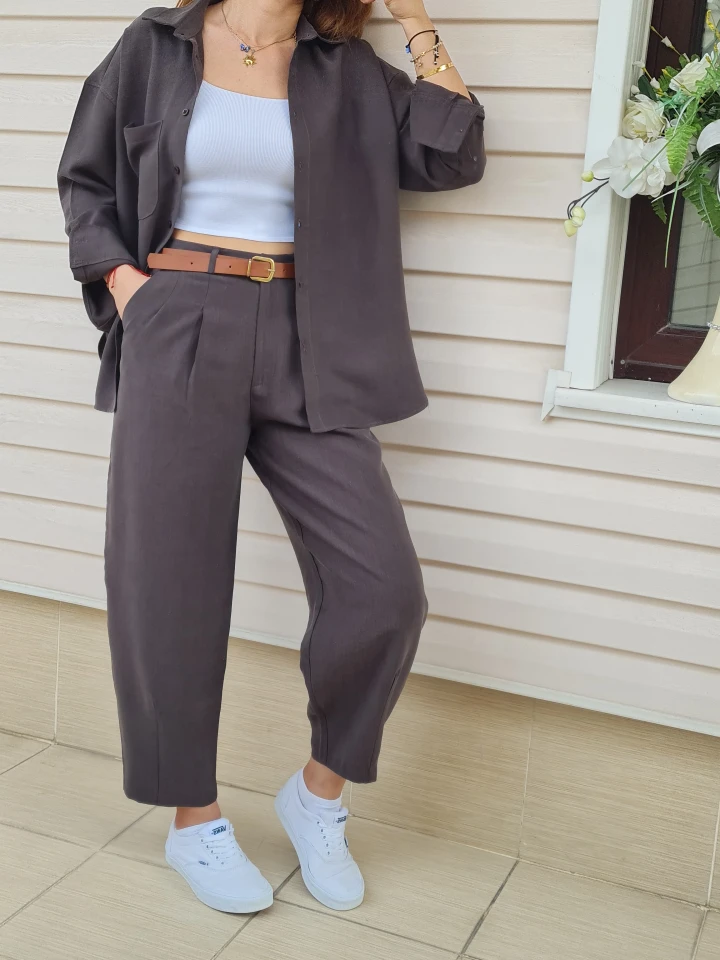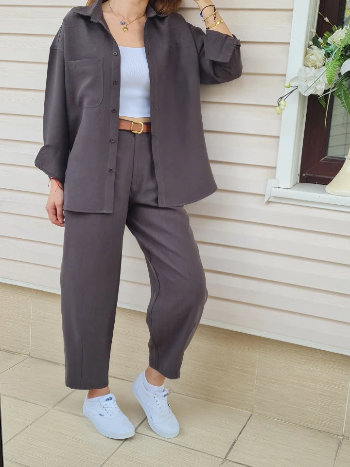 Tensel kumaşın hafifliği ve nefes alan yapısıyla gün boyu konfor sunan gömlek & şalvar pantolon takım… Salaş kesimiyle hem rahat hem de stil sahibi görünmek artık çok kolay!