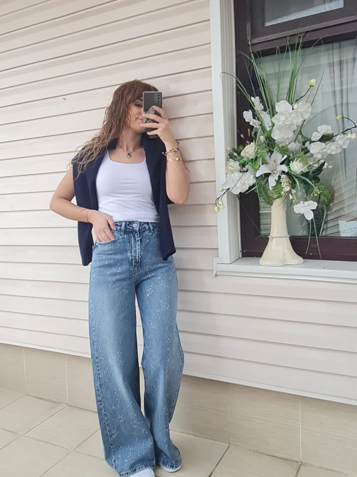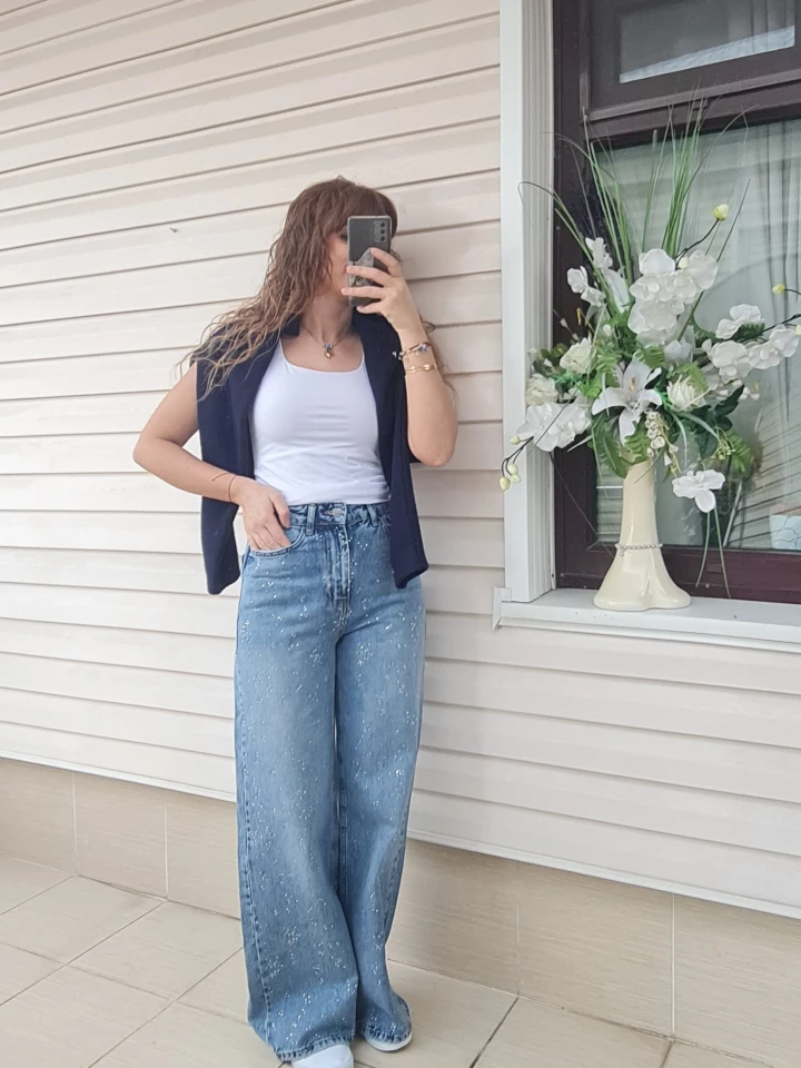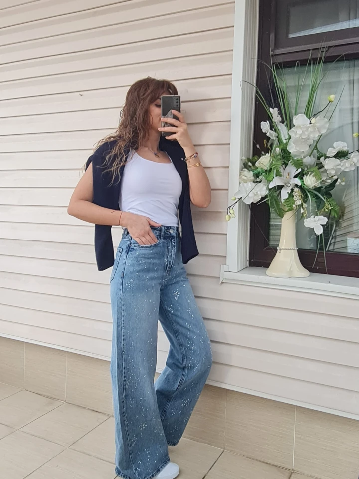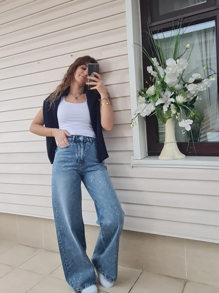 {"type":"doc","content":[{"type":"paragraph","content":[{"type":"text","text":"Işıltıyı günlük stile taşı."}],"attrs":{"textAlign":"start"}},{"type":"paragraph","attrs":{"textAlign":"start"},"content":[{"type":"text","text":"Taş detaylı mavi palazzo kot ile hem rahat hem iddialı bir görünüm!"}]},{"type":"paragraph","attrs":{"textAlign":"start"},"content":[{"type":"text","text":"Yüksek bel kesimi ve dökümlü duruşuyla gün boyu konfor, her adımda stil."}]},{"type":"paragraph","attrs":{"textAlign":"start"},"content":[{"type":"text","text":"Model Boyu:170"}]},{"type":"paragraph","attrs":{"textAlign":"start"}},{"type":"paragraph","attrs":{"textAlign":"start"},"content":[{"type":"text","text":"Model Kilo :57"}]},{"type":"paragraph","attrs":{"textAlign":"start"}},{"type":"paragraph","attrs":{"textAlign":"start"},"content":[{"type":"text","text":"Model Üzerinde ki Beden: 36"}]}]}