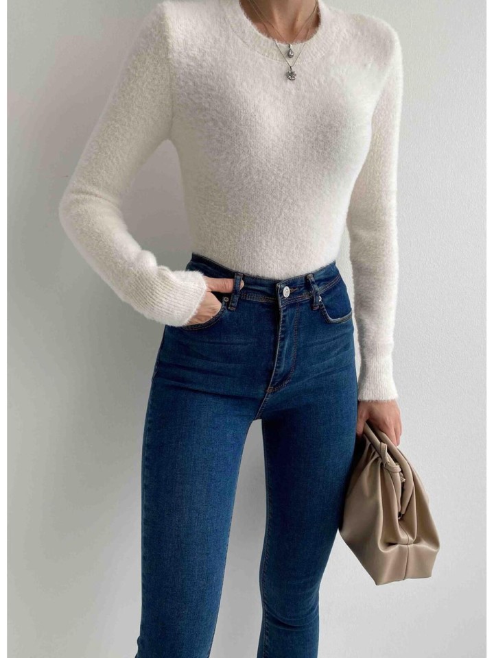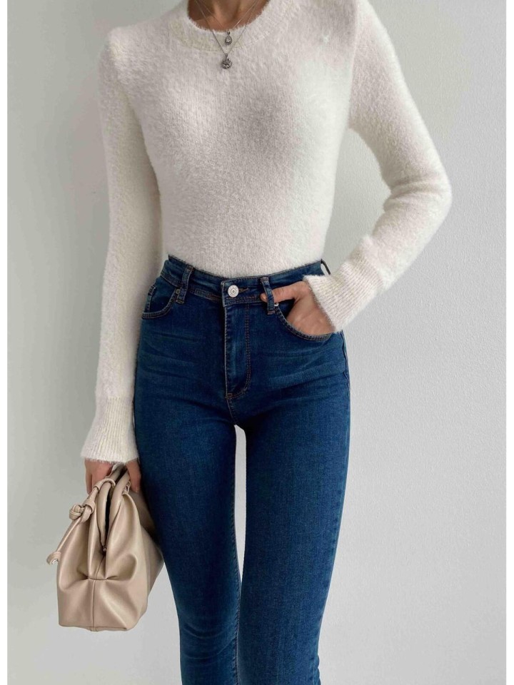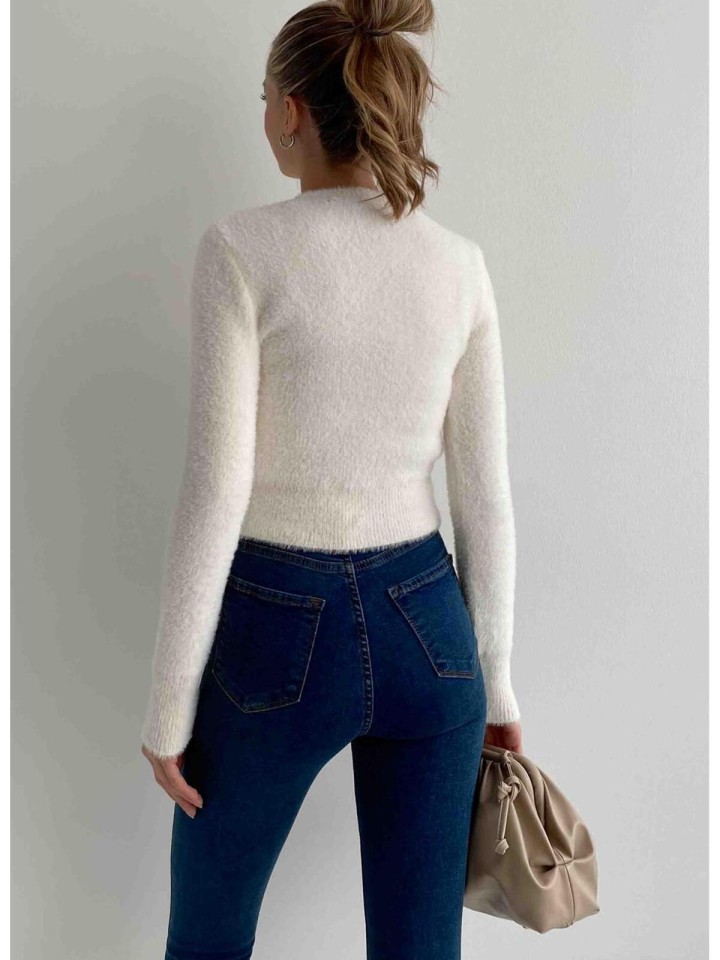 Her yaş grubuna hitap eden, rahat ve şık bir tasarım sunan bisiklet yaka sakallı crop kazak